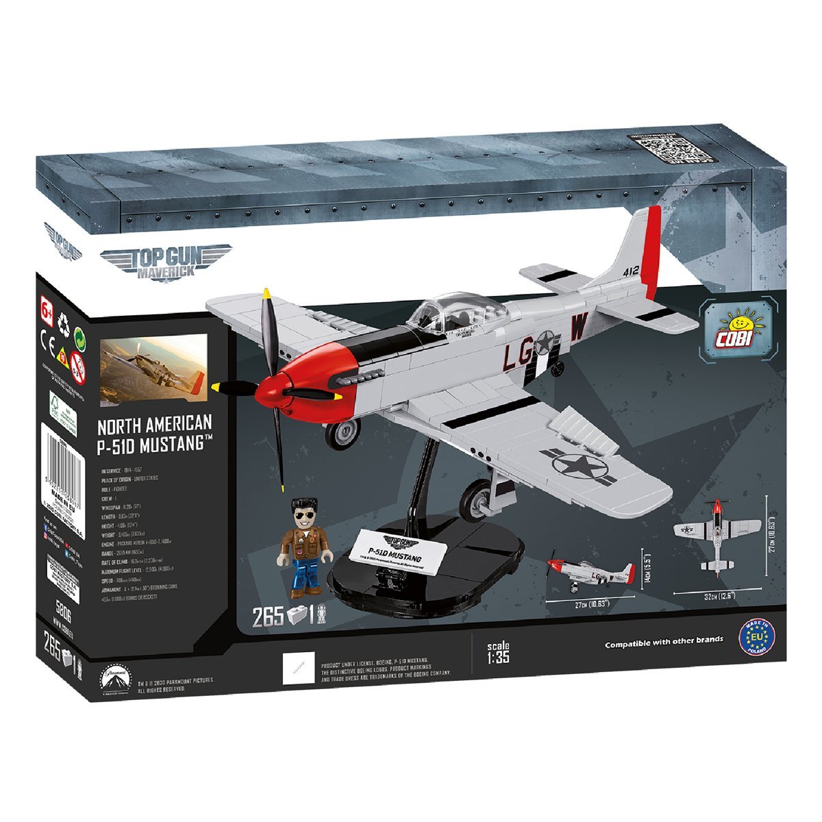 North American P-51 „Mustang” to amerykański jednomiejscowy myśliwiec dalekiego zasięgu z czasów II wojny światowej. Premiera zestawu zbiega się ze zbliżającą się premierą filmu Top Gun: Maverick. Zestaw jest produkowany na licencji Paramount Pictures i The Boeing Company.