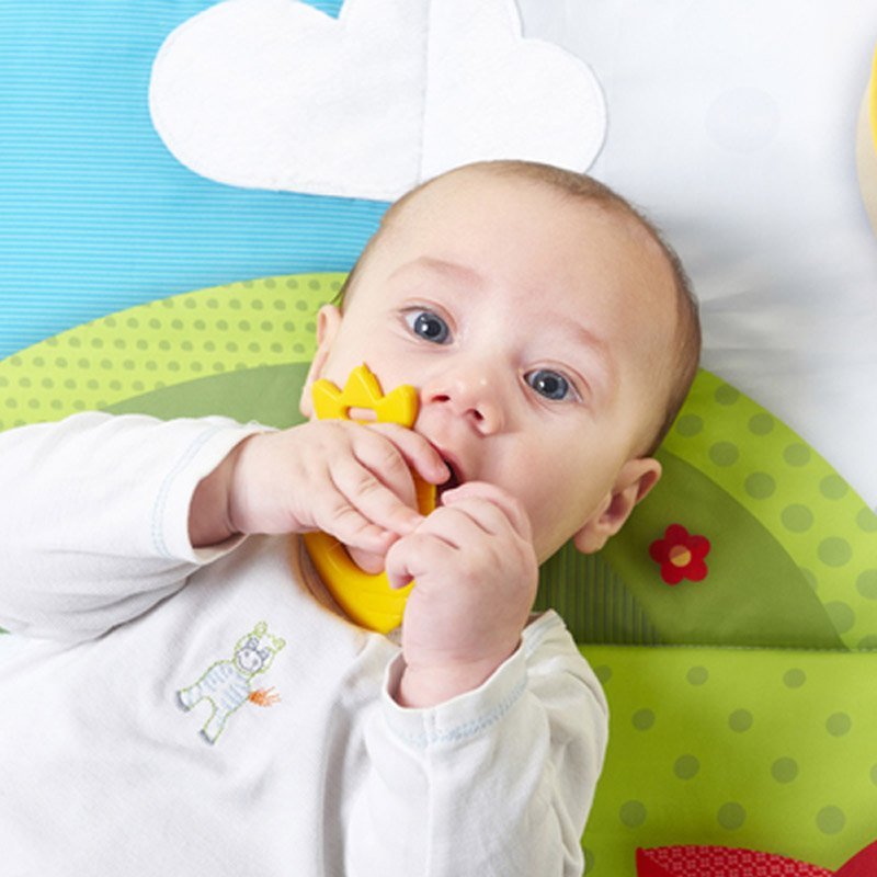- 6+ miesięcy. Poznawanie – związki przyczynowo-skutkowe. W miarę jak dziecko będzie starsze, będzie mogło samo bawić się zabawkami na macie.