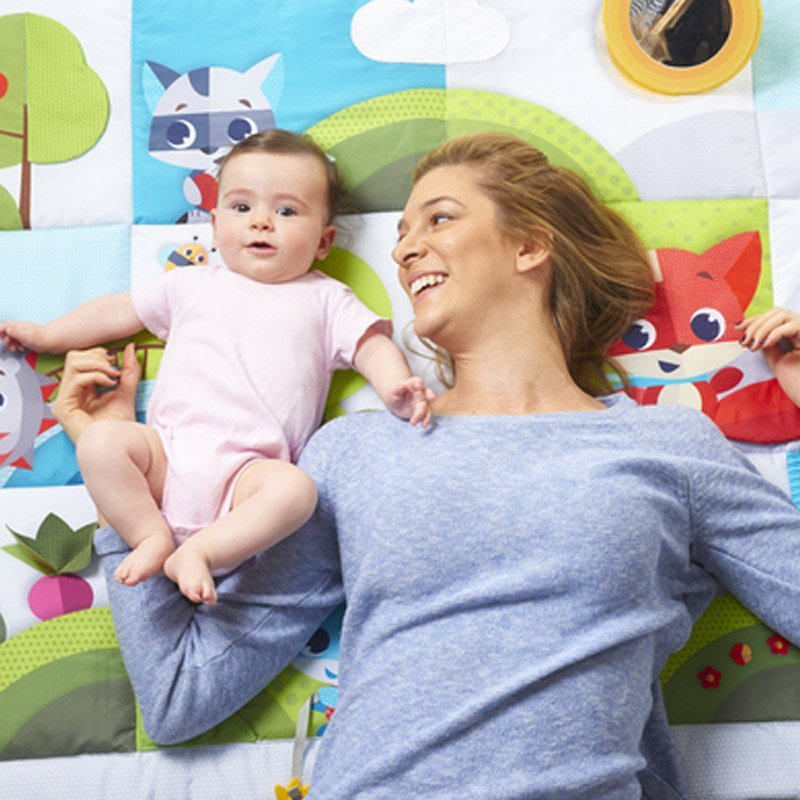 - Poruszajmy się i siadajmy. Rozmiar maty pozwala na naukę raczkowania i zabawy na siedząco.