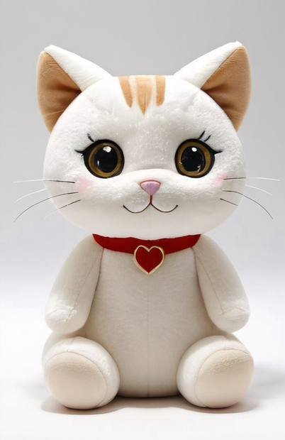 Ten elegancki pluszowy kotek z czerwoną obróżką to prostota i urok w jednym. Jego puszyste futerko i starannie wykończone detale sprawiają, że prezentuje się niezwykle realistycznie.