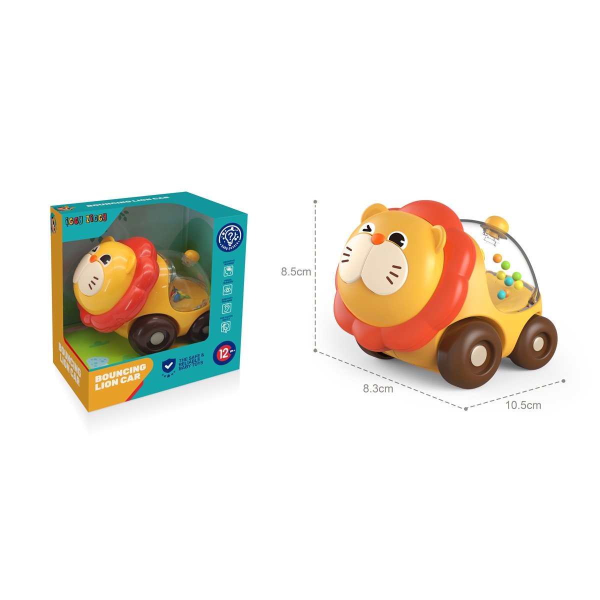 Edukacyjny wózek inwalidzki Iggy Ziggy to kolorowy samochodzik w kształcie lwiątka, wykonany z wytrzymałego plastiku. Podczas jazdy, wielokolorowe kulki toczą się wewnątrz przezroczystego tyłu, wydając zabawne dźwięki. Zabawka pomaga rozwijać słuch, uwagę i motorykę małą dziecka. Iggy Ziggy to marka edukacyjnych zabawek dla niemowląt. W ofercie znajdują się jasne i bezpieczne zabawki, które pomagają dzieciom poznawać świat w zabawny sposób. Produkty marki mają na celu rozwijanie motoryki małej, logiki, koordynacji i percepcji sensorycznej. Wszystkie zabawki Iggy Ziggy są wykonane z wysokiej jakości i bezpiecznych materiałów. Jaskrawy design i interaktywne elementy sprawiają, że każda zabawka jest dla dziecka wyjątkowo ekscytująca.