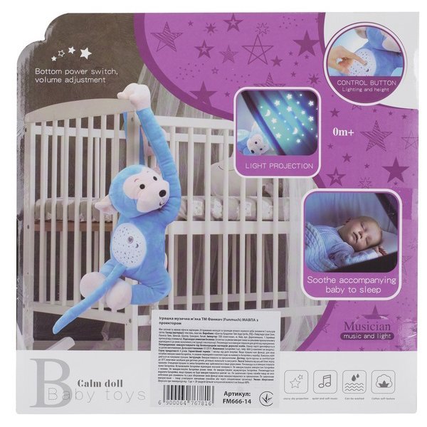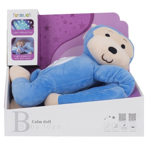Lampka nocna Funmuch Małpka z projektorem FM666-14 to muzyczna pluszowa zabawka z projektorem. Małpka z przyjemnymi melodiami wyświetla nocne, rozgwieżdżone niebo na suficie, zapewniając słodkie sny Twoim maluchom. Lampka nocna działa nieprzerwanie przez 20 minut. Można prać po wyjęciu jednostki muzycznej.