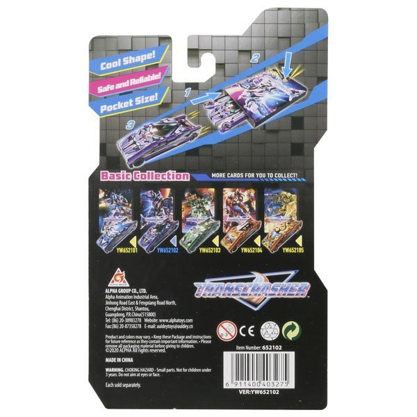 Zestaw transformującego się samochodu Predator z wyrzutnią Transcrasher YW652102. Zestaw zawiera transformujący się samochód z wyrzutnią. Po zderzeniu z przeszkodą karta transformuje się w samochód. Instrukcja: Włóż rozłożony samochód do wyrzutni i naciśnij przycisk start.